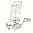 1. Faraday Chair: As electronic products escape their cases and leak into the space surrounding them, it might become necessary for people to seek shelter in specially constructed non-radio spaces or negative radios. To shield our homes would be a luxury only the rich could afford. The Faraday Chair provides shelter from electromagnetic fields invading our homes. It is a utilitarian shelter of minimum dimensions and comfort, it might even be a retreat, a new place to dream, away from the constant bombardment of telecomunication and electronic radiation.